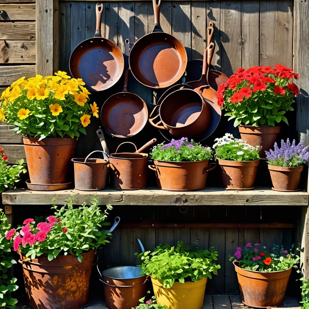 If you're feeling particularly crafty, take a sturdy old frying pan, paint it a quirky color, and hang it on the fence as a unique flower holder. Just picture bright geraniums cheerfully waving in the breeze! Use different sizes of pots and pans to create tiered arrangements. Stack them at varying heights on wooden stumps or stones to capture your guests' attention. That's right—you're not just a gardener; you're an artisan of whimsy!